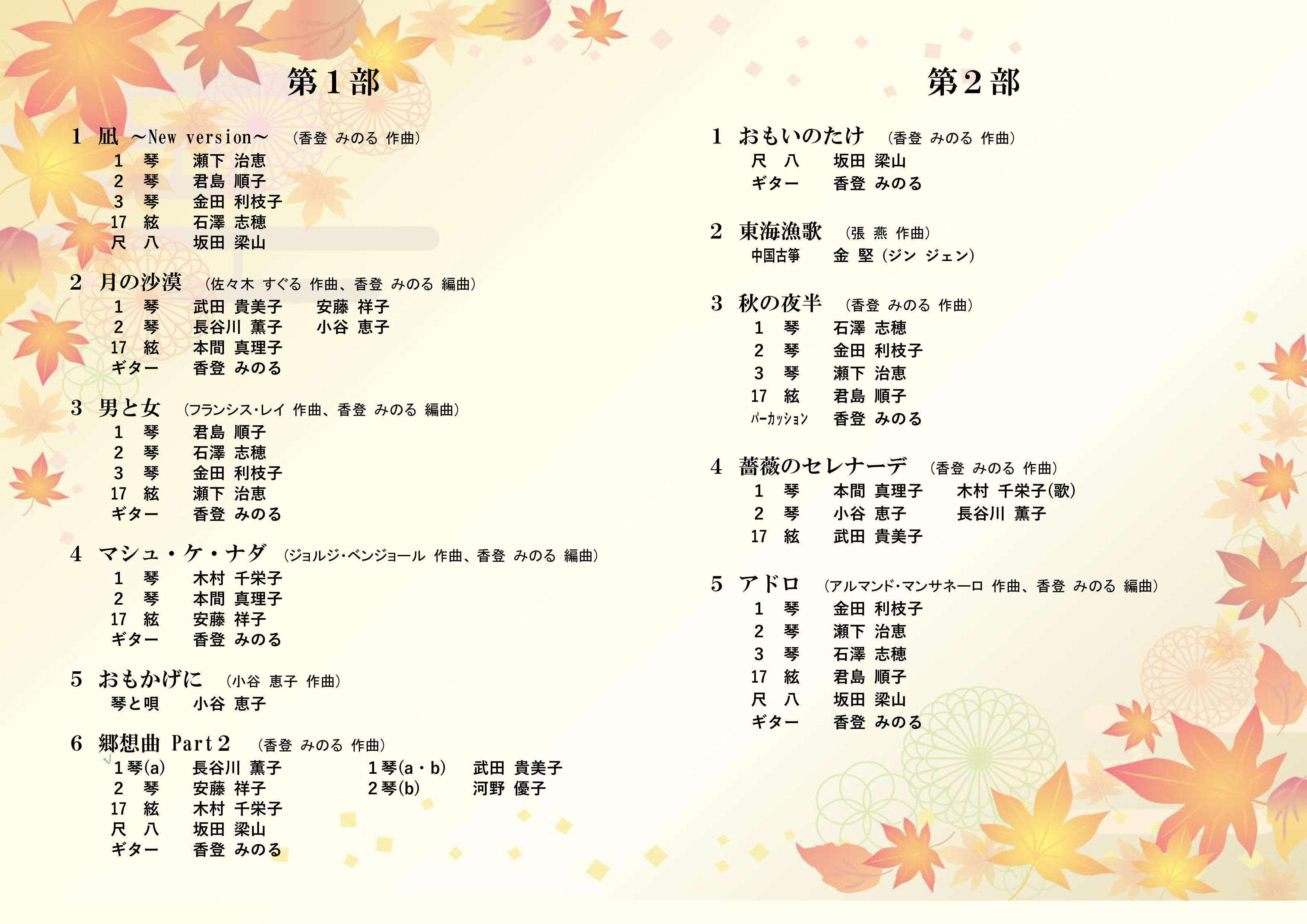 絃方:豊千会/朱雀会/一葉会/葉風会/豊川会/ひびき21/箱絃会(演奏順)