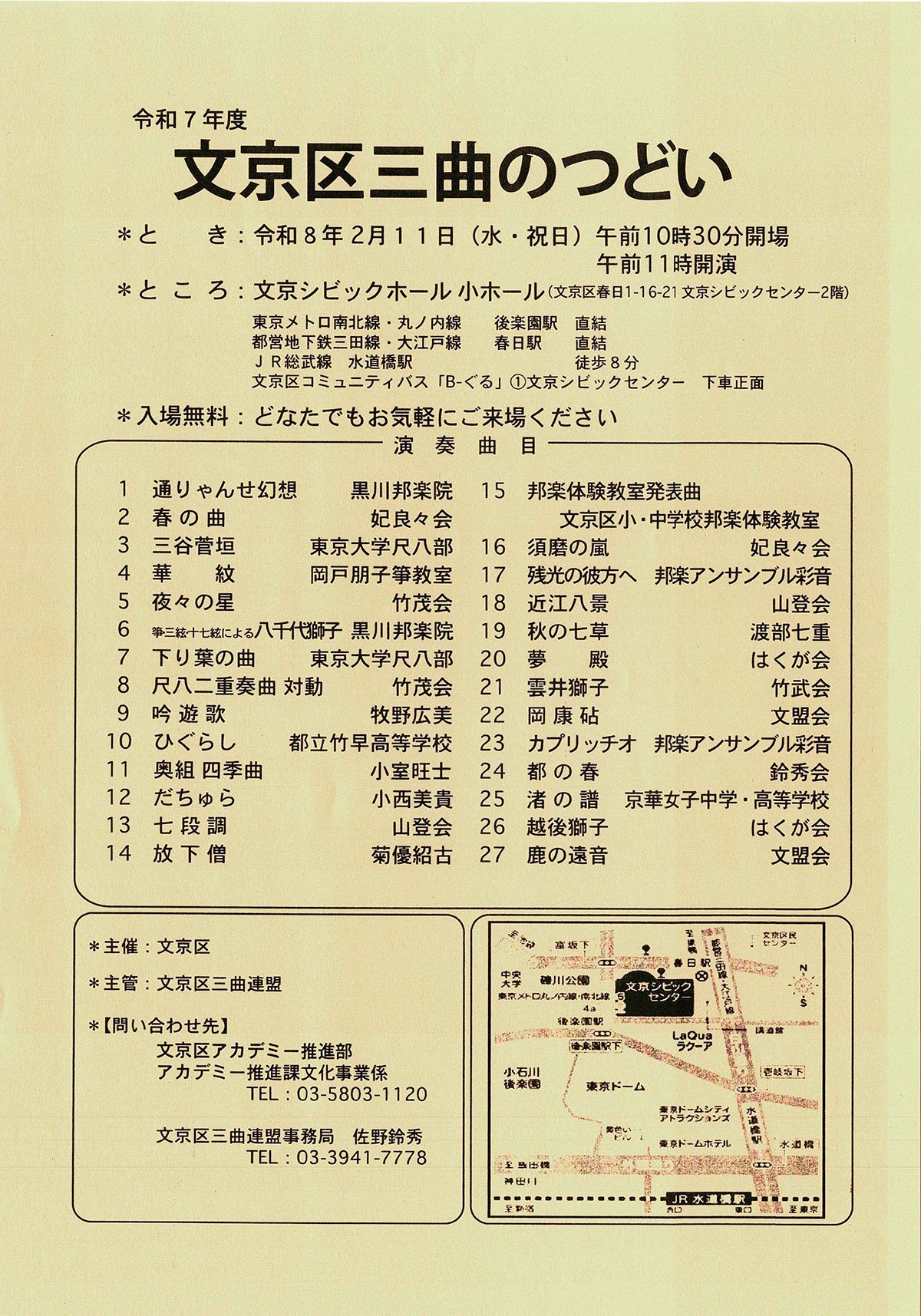 TEL:03-5803-1120文京区三曲連盟事務局 佐野鈴秀